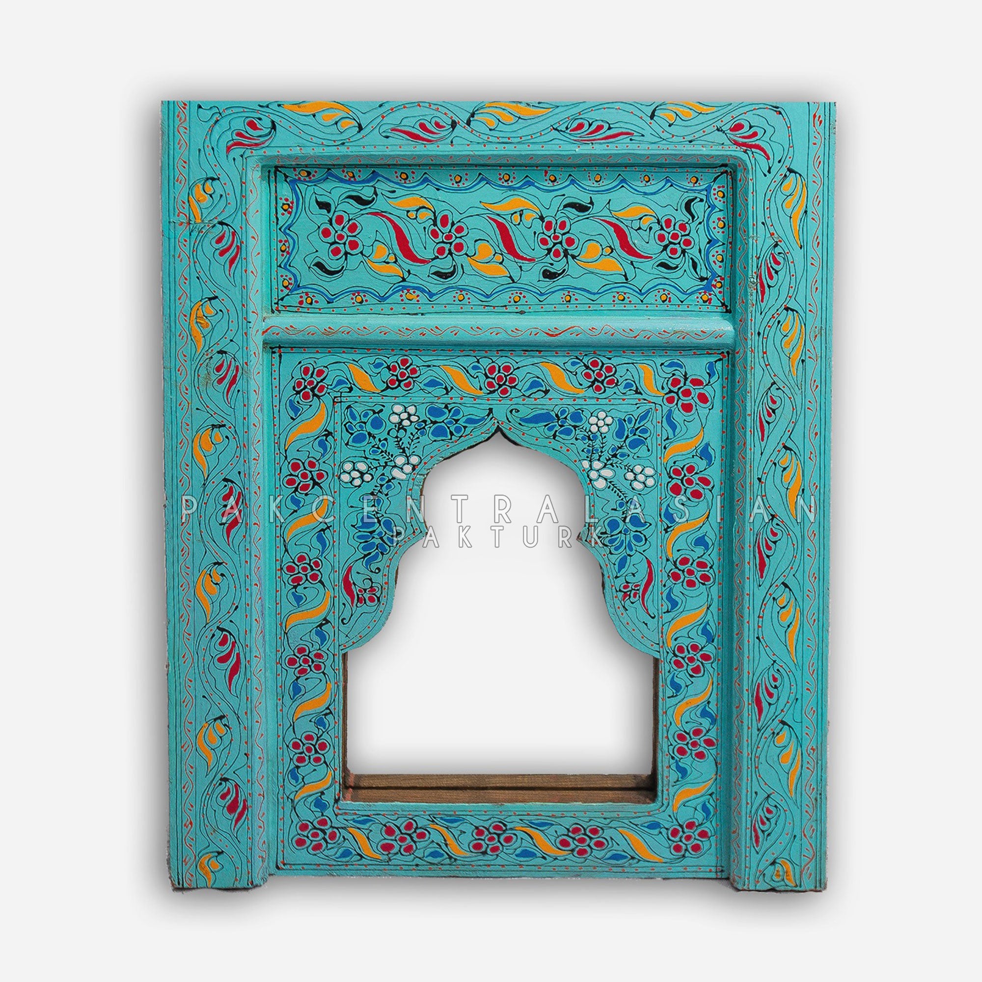 The Akbari Merve Mirror is a beautifully crafted decorative wall mirror with an artistic Akbari-style frame.