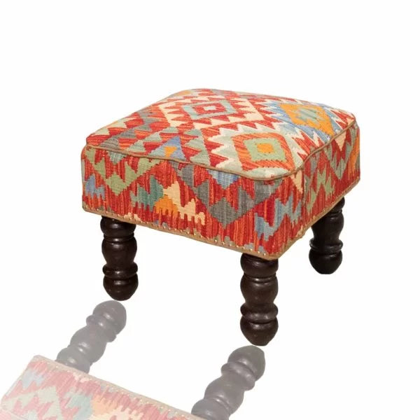 The Kilim Square Stool features traditional kilim upholstery that brings rich pattern and texture to any room while offering comfortable seating or footrest use. Its compact design makes it perfect for living rooms, bedrooms, or lounge spaces. Crafted with quality materials and vibrant finishes, it adds both practicality and artistic flair to your interior.