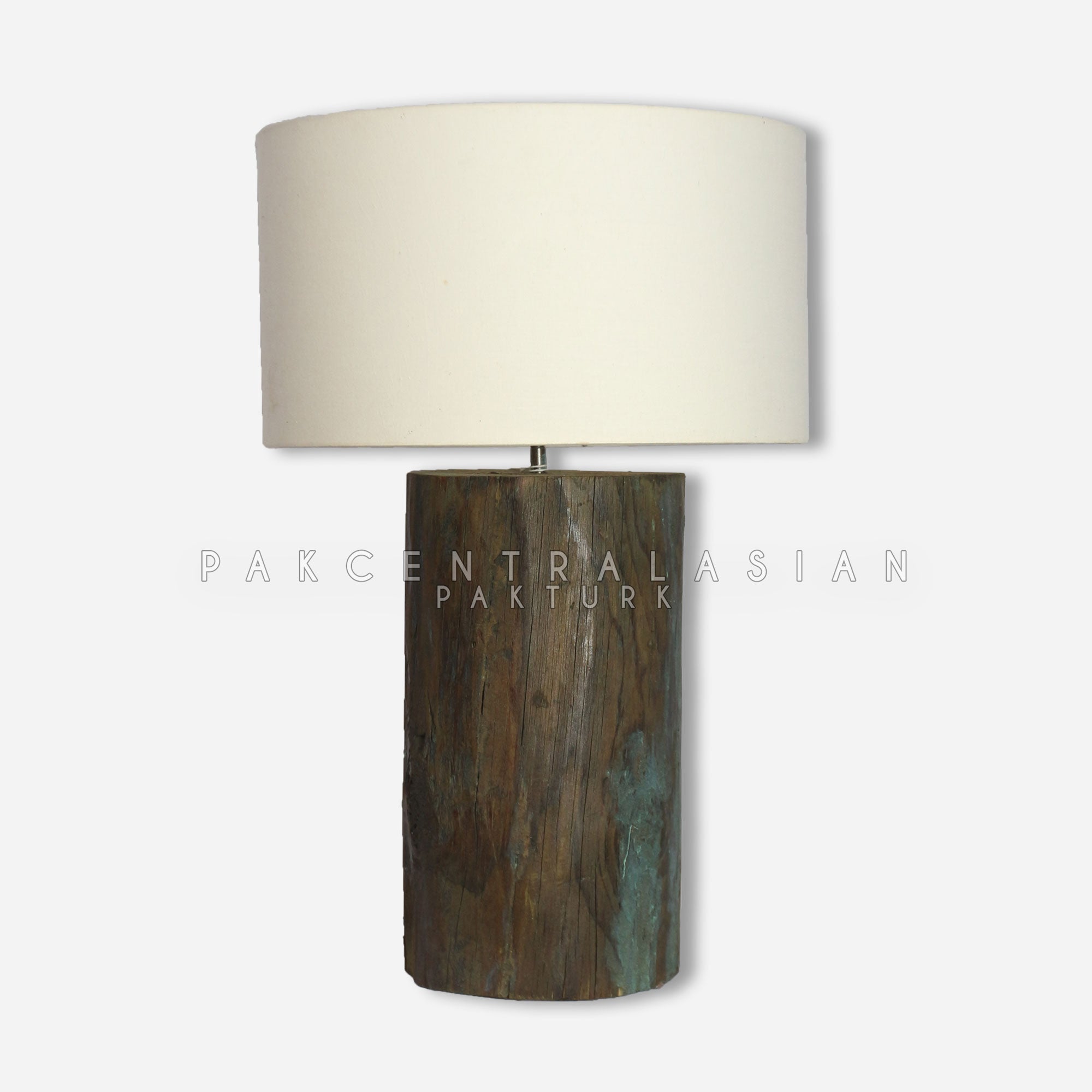 A rustic wooden side table lamp featuring natural log design and classic proportions, ideal for adding earthy charm and warm lighting to any room. Its compact dimensions make it versatile for bedside tables, living spaces, or accent corners.